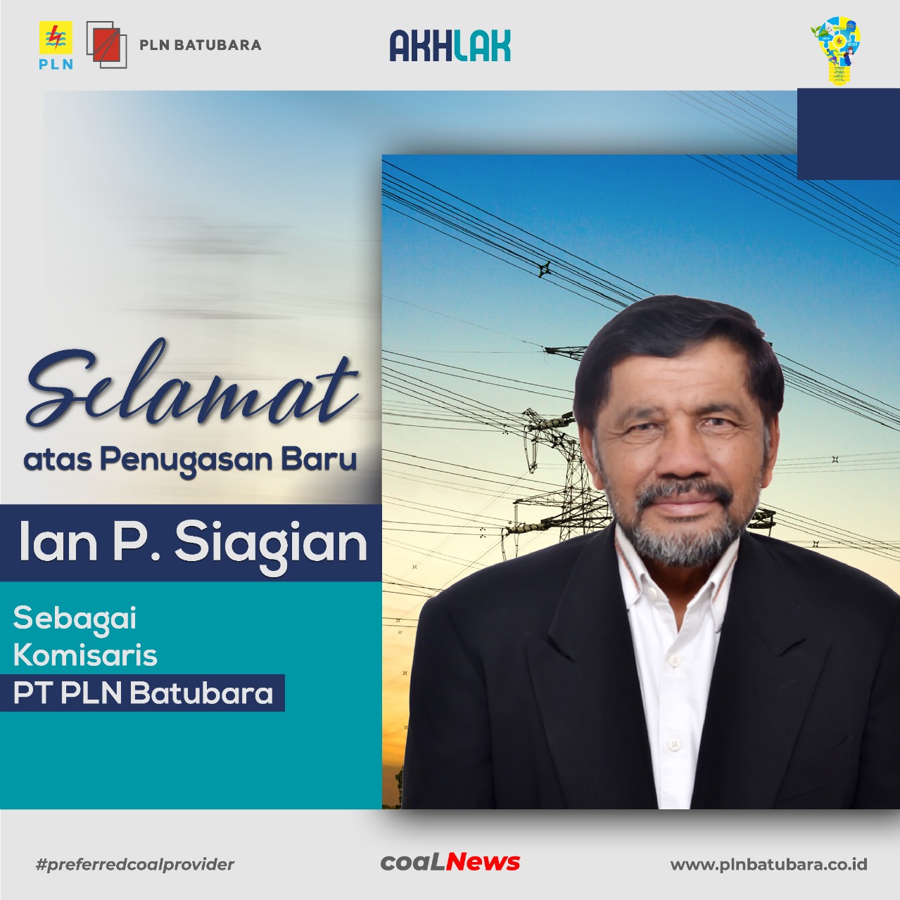 Selamat atas Penugasan Baru bapak Ian P. Siagian sebagai Komisaris PT PLN Batubara.